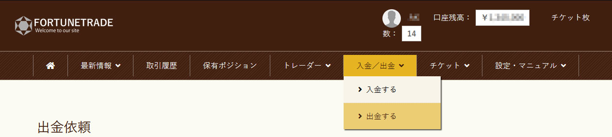 FORTUNETRADEの出金方法について説明します。